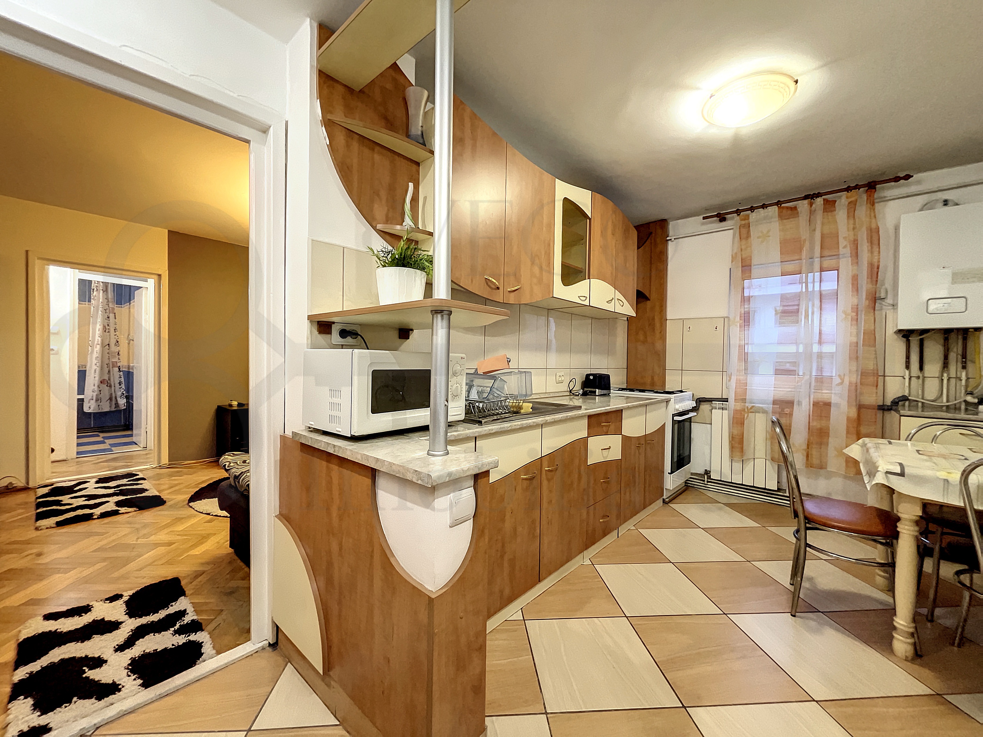 Locuința se desfășoară pe o suprafață utilă de 48 mp + un balon de 5 mp, se închiriază complet finisată, mobilată și utilată, iar în rândul dotărilor menționăm pardoseala cu parchet din lemn natural, ferestrele termoizolante cu tâmplărie PVC, uși interioare din lemn și ușă metalică la intrare, iar confortul termic este oferit de centrala termică individuală, costurile pe parcursul iernii fiind reduse.