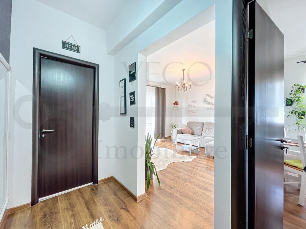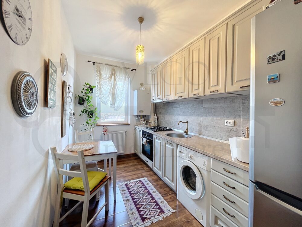 Locuința este luminoasă, datorită orientării vestice a celor două camere, se desfășoară pe o suprafață utilă de 47 mp + un balcon de 6 mp, se vinde complet finisată, mobilată și utilată, astfel încât se poate ocupa imediat, în rândul dotărilor menționăm pardoseală cu parchet laminat, uși interioare din lemn, ușă metalică la intrare, ferestre termoizolante cu tâmplărie PVC, iar confortul termic este oferit de către centrala termică individuală, totul fiind contorizat separat.