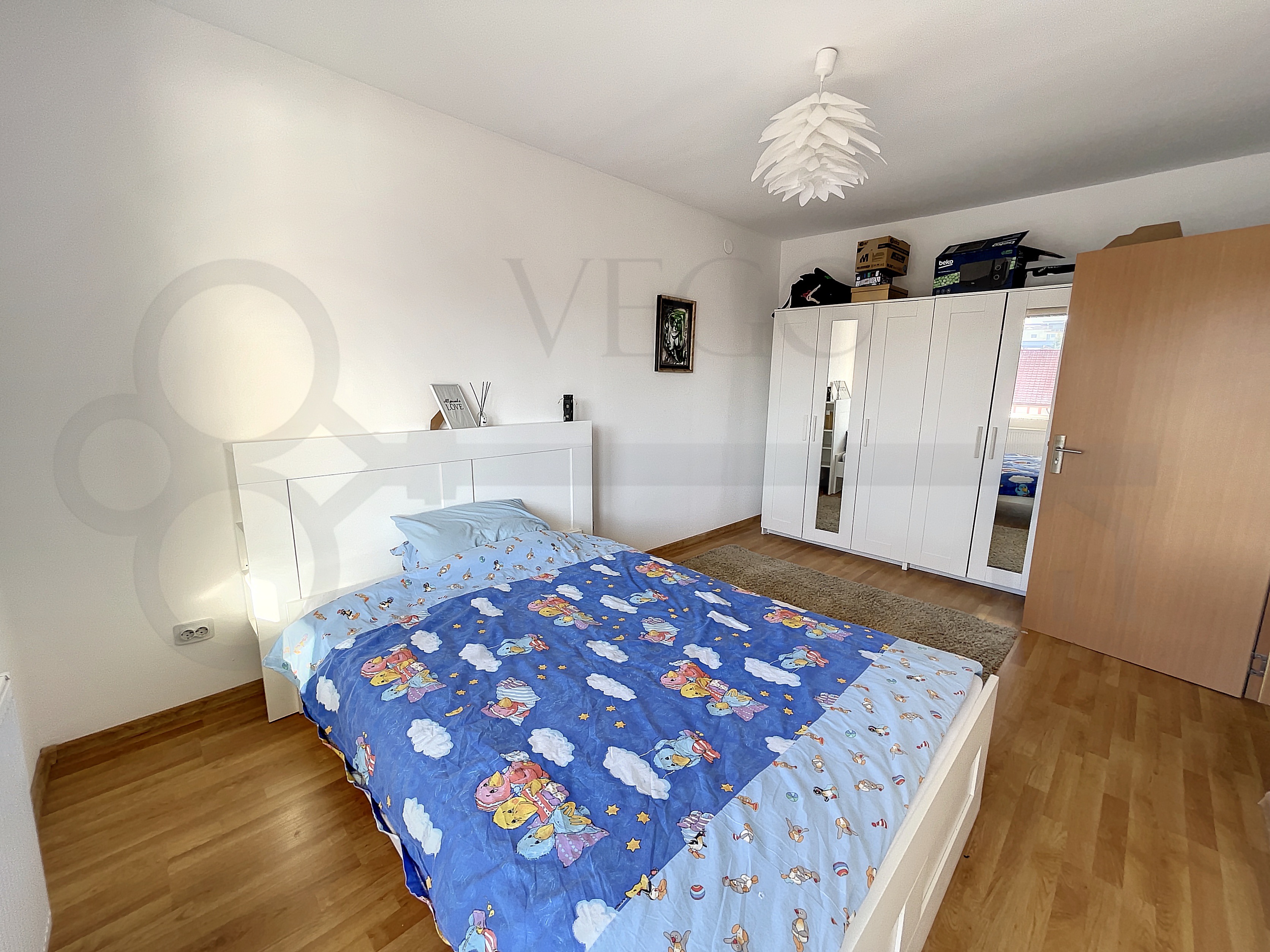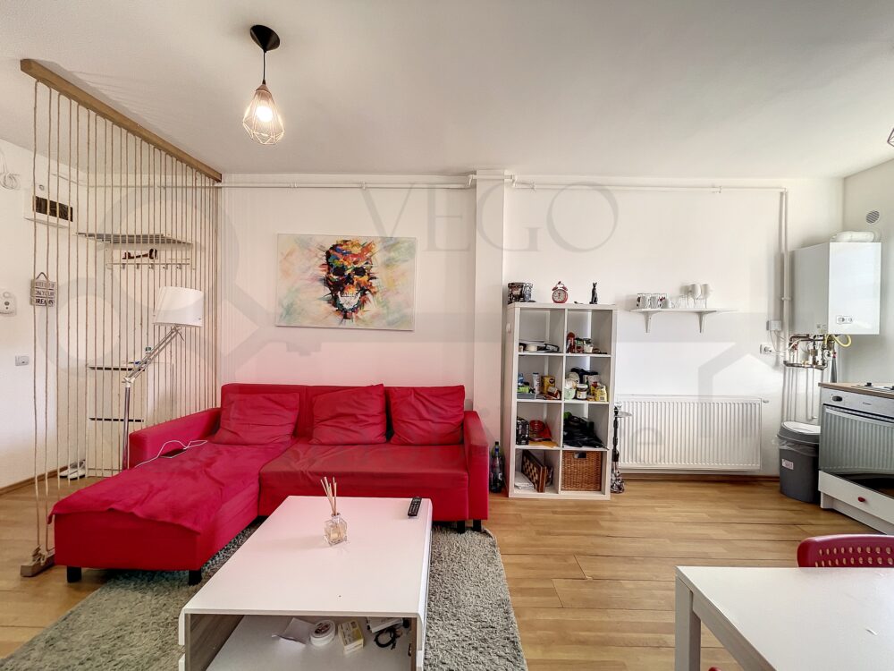 Locuința este luminoasă, datorită orientării vestice, se desfășoară pe o suprafață utilă de 42 mp + un balcon de aproximativ 6 mp, se vinde finisată, mobilată și utilată, în rândul dotărilor menționăm pardoseală cu parchet laminat, uși interioare din lemn, ușă metalică la intrare, ferestre termoizolante cu tâmplărie PVC, iar confortul termic este oferit de către centrala termică individuală, totul fiind contorizat separat.