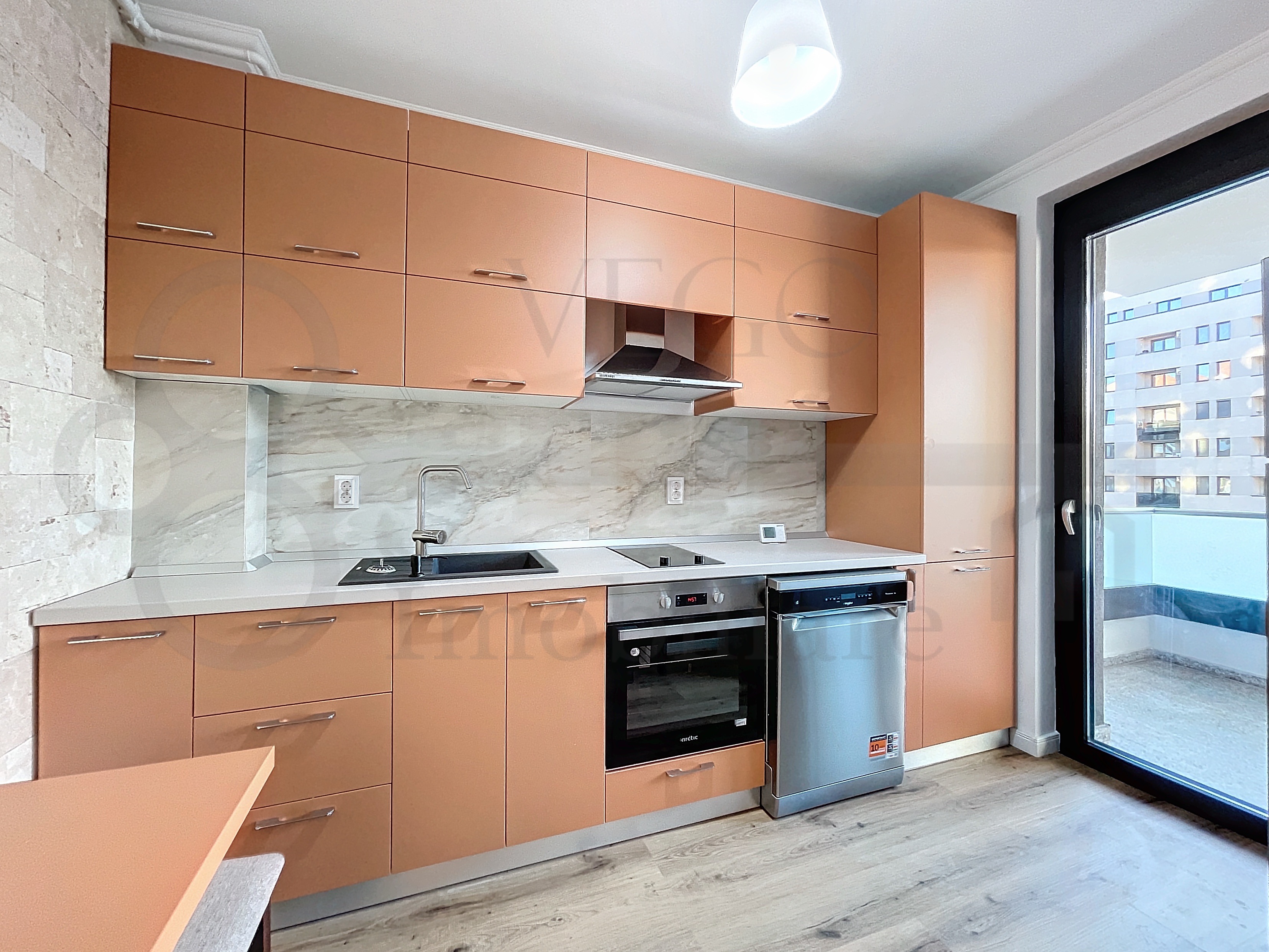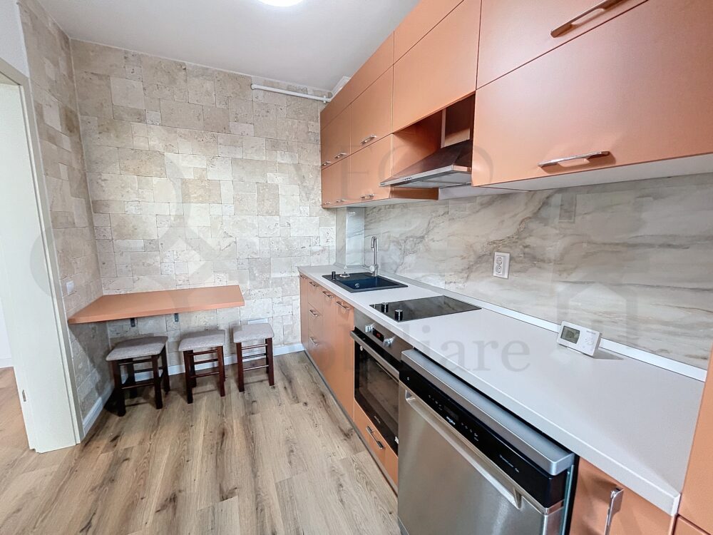 Locuința se desfășoară pe o suprafață utilă de 40 mp + o terasă de 8 mp, este complet finisată, mobilată și utilată modern, cu materiale și electrocasnice de calitate, în rândul dotărilor menționăm ferestrele termoizolante cu tâmplărie PVC, pardoseală cu parchet laminat, pereți cu lavabilă, uși interioare din lemn și ușă metalică la intrare, iar confortul termic este oferit de centrala termică individuală și aparatul de aer condiționat.